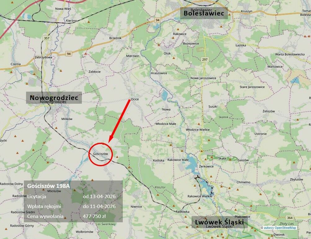 w dniu 13.04.2026 r. o godz. 11:00 w Sądzie Rejonowym w Bolesławcu, pod adresem ul. Sądowa 1, 59-700 BOLESŁAWIEC, numer sali 27, odbędzie się pierwsza licytacja nieruchomość zabudowana budynkiem mieszkalnym.
